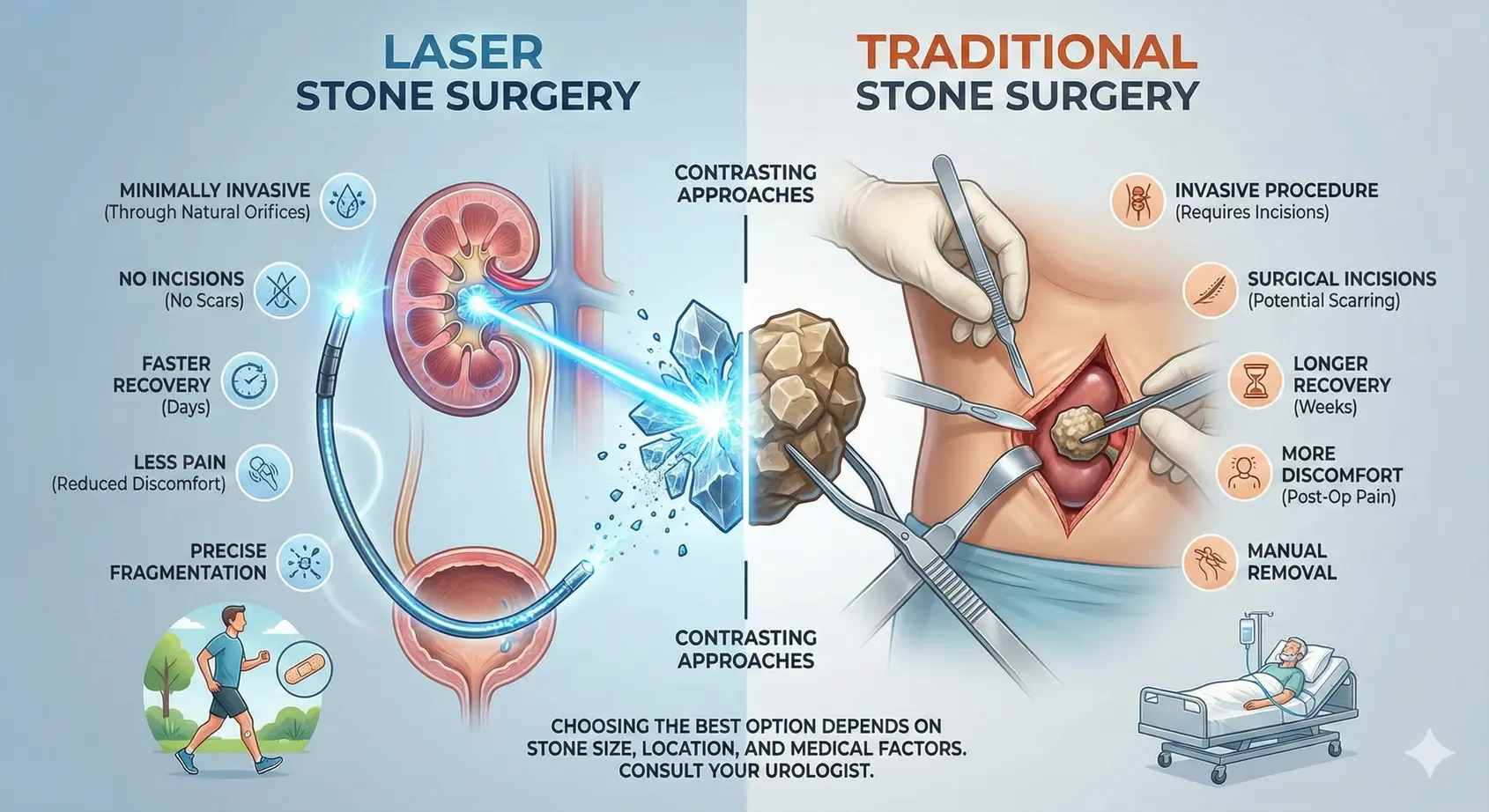 The debate between Laser and Traditional Stone Surgery is not about which is “better” in the abstract, but which is “better for the specific stone.”
